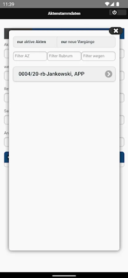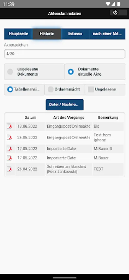 Mit dieser Applikation haben Sie direkten Zugriff auf Ihre Akte in unsere Kanzlei.