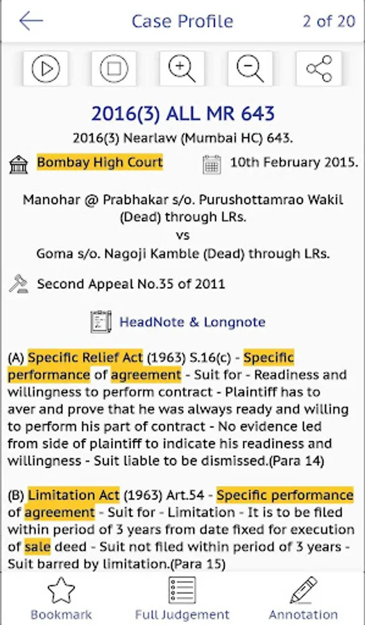 NearLaw is much more than a key word search app, but is a well structured India Law Library database containing researched and indexed Court case law data containing judgement of Supreme Court. Judgements are interlinked. Interlinking is a unique concept available only in SpotLaw. It works as an online legal manual: