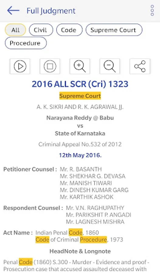 4) Comprehensive Law Finder App among all Case Law apps (such as eCourts App) with Advanced Search to search judgements using Topic wise, Keyword Search, Subject (Act Statute Name) with Section, Order, Article or Rule.