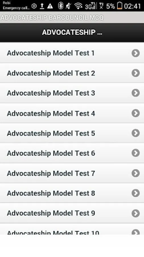 This is the Quiz test of Bangladesh Barcouncil Enrollment Exam. It's contain about 10 model test, Each model test consists of 20 single Question, It has User Friendly Interface and most important alternative questions for barcouncil enrollment Exam.