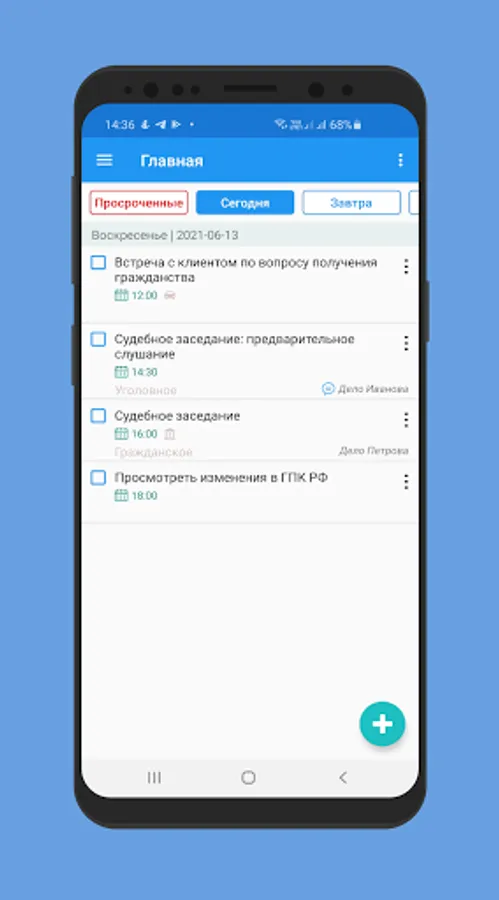 • Link your case and the case in court, thereby ensuring control over the movement of the case. When a new date or decision appears, you will receive a notification.