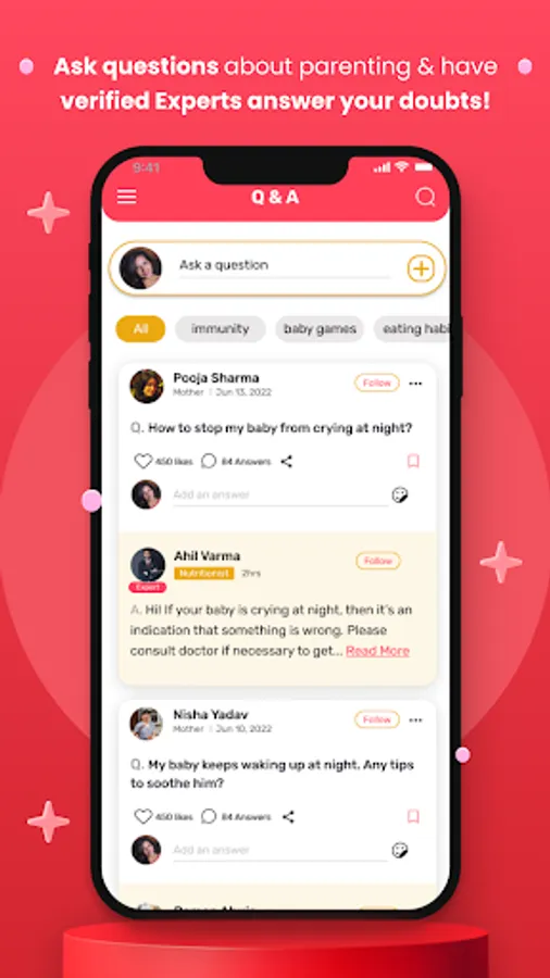 Benefit from our interactive community of experts and fellow parents. Get all your queries addressed promptly, share your experiences, and grow together in this parenting journey.