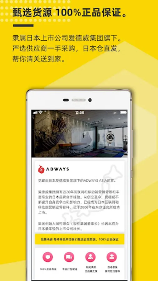 ADWAYS operates one of the largest advertising alliances in Japan, "JANet", serving many Japanese e-commerce companies. In March 2015, it acquired wholly-owned Japanese transshipment company Yifanfan to further expand its business system and provide one-stop services including logistics, marketing and CS for Japanese e-commerce companies.