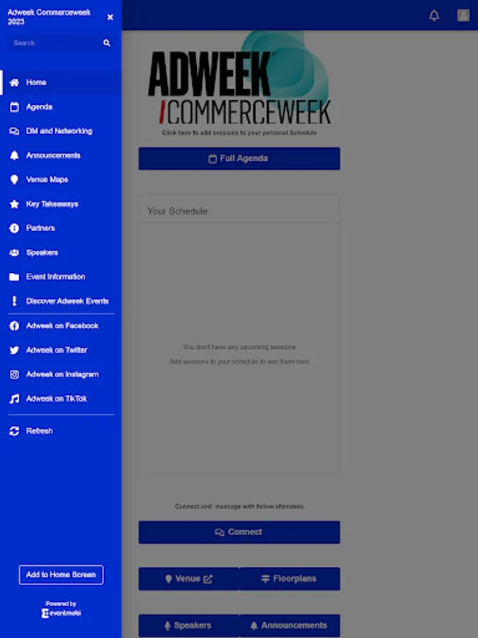 Make the most of your Commerceweek experience with networking features and real-time access to all the latest event announcements, updates, and information. Plan your experience by using the "My Agenda" feature, receive event notifications so you never miss an important session, use the map to navigate the venue, explore the speaker lineup, stay up to date on the latest activity and more. Plus, turn on your networking to receive and send direct messages to other Commerceweek attendees.