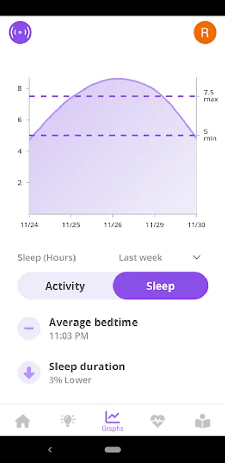 With the Alerts app, you set a goal for your health that you want to achieve, and you track how activity, sleep, medication use, and other factors affect your ability to reach that goal. You can connect more than 20 wearable devices from Fitbit and Oura Ring and set up a profile that lets you log other details like medication use. We send you a push notification once a day asking you how you are doing, and that’s it! We’ll take care of the rest, showing you patterns and insights on how lifestyle and current treatments strategies are affecting your symptoms and your ability to achieve your goal.