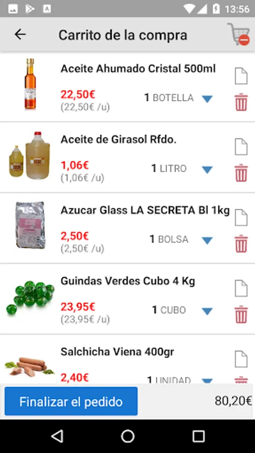 See the products in detail, add them to your basket or modify your purchases according to your needs.