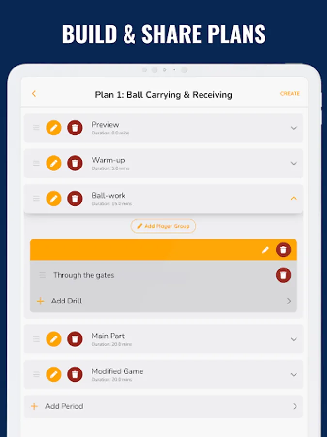 - Design your own practice plans by editing plans from the library and adding your favorite drills