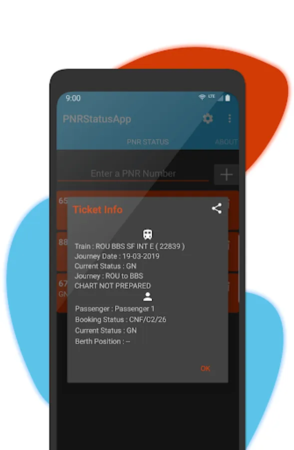 Disclaimer: Third party services are used for retrieving PNR information, whose availability can't be guaranteed. This app is unofficial and not related to or endorsed by Indian Rail or IRCTC. No part of the PNR information retrieved is persisted on your device by this application.