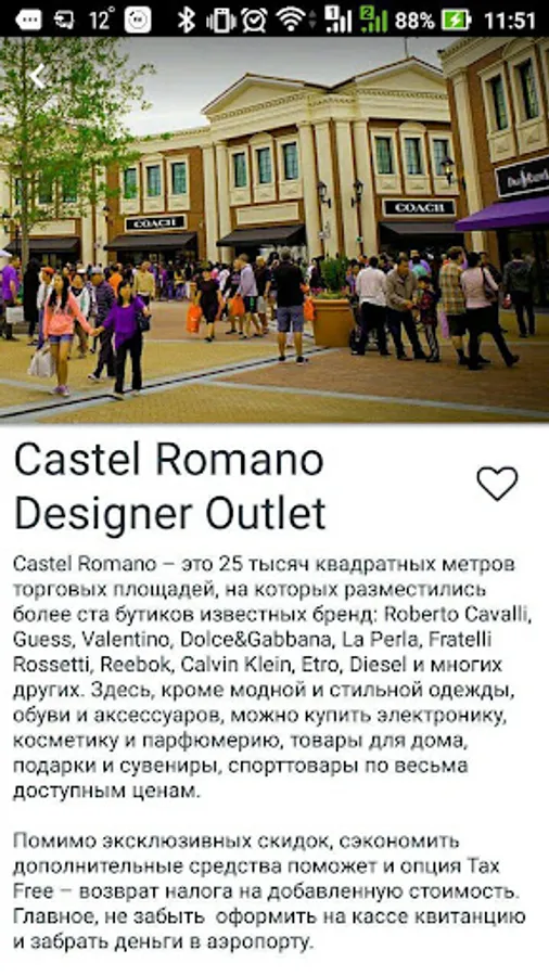 Here you will find current information about the popular sights and attractions, restaurants and pizzerias, shops and outlet shopping; information on transport, remarkable and little-known places for foodies, opening hours and ticket prices to major tourist sites, to not to miss anything, and do everything.