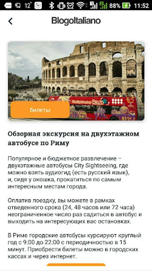 Each object in the application is accompanied by a photo, description, approximate level of prices and recommendations on what to look for. After all, Rome - a real open-air museum, and travelers often overlook the world-famous masterpieces, simply because they are hidden behind the facades of buildings is quite mediocre.