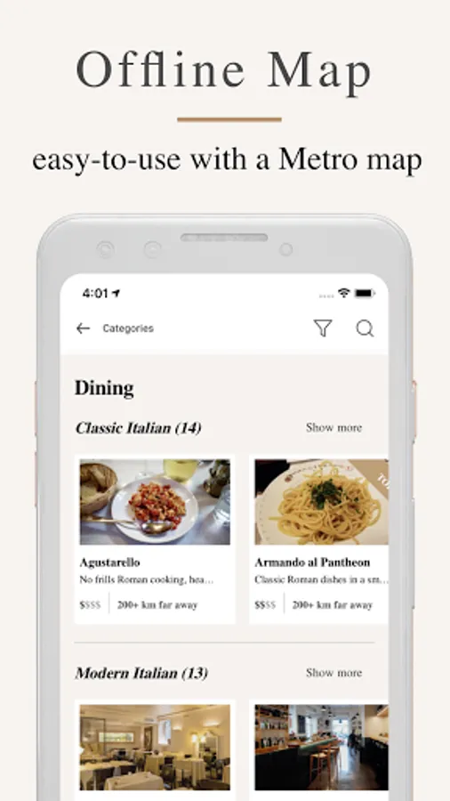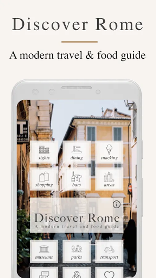 While guidebooks are heavy and quickly outdated, Discover Rome provides tips on what to see, do and eat in Rome that is constantly updated and available at your fingertips. With easy-to-use offline maps, exploring Rome like a local has never been easier. Discover Rome offers nearly 200 suggestions on Rome's best monuments, restaurants, street food, bars, shopping and more - all tried and tested by the author behind the popular city blog An American in Rome.
