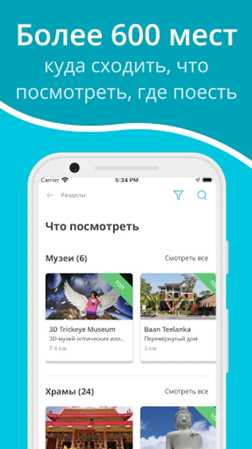 Magnificent beaches and ancient temples, sunset spots, cafes and restaurants, bars, night and beach clubs, supermarkets, markets and fairs, massage parlors, spas, children's attractions, Sino-Portuguese architecture, island specialties - in the mobile guide there is everything to usefully spend time on the island of Phuket. The information has been collected for you by the author of the Rino4ka.ru website. Each place is accompanied by a description and photographs, rating and order of prices, contacts and location on the map. Several options are available for search: by topic, choice from a general list, in alphabetical order, by location and the ability to create an individual list of interesting places. The information is saved on your phone and will be available even without internet access.