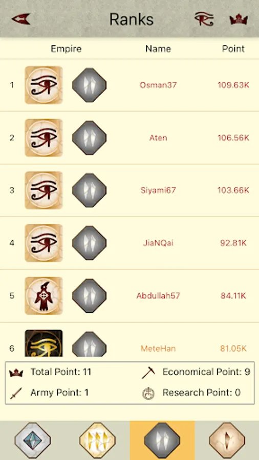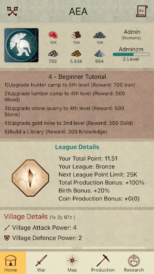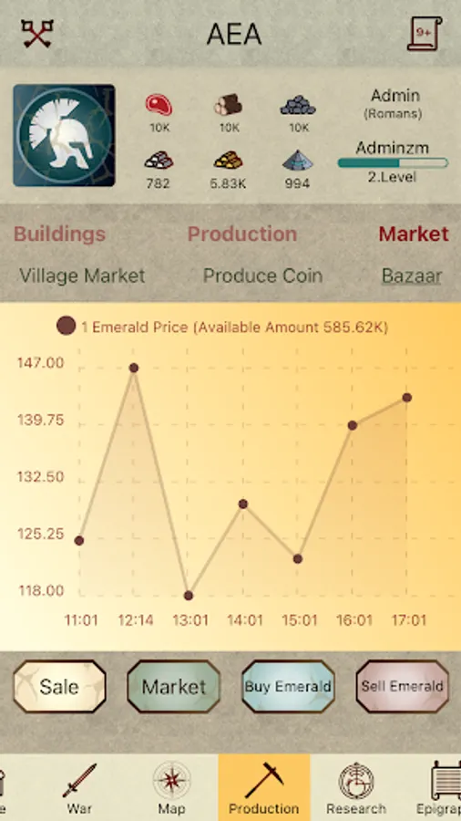 There are different elements of game such as population of your city, buildings, researches and combats. You will grow your empire by spending 6 different type of resources. By the time you will choose the strategy of your empire.