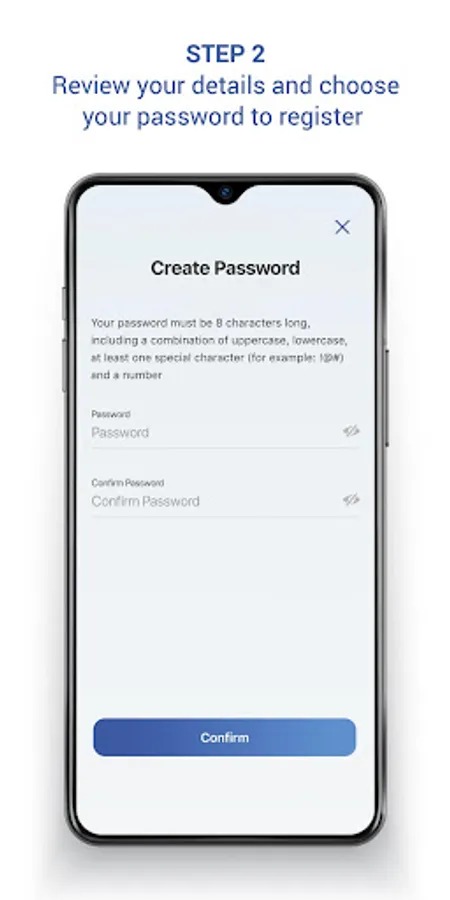 Step 2: Review your details and choose your password to register