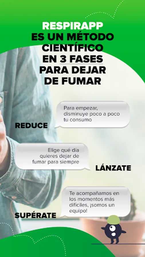 From the Spanish Association Against Cancer we want to help you quit smoking in 3 phases with RespirApp . Discover the method to stop smoking endorsed by the Spanish Association Against Cancer - we start up against tobacco. Quitting smoking is possible little by little: we show you how.