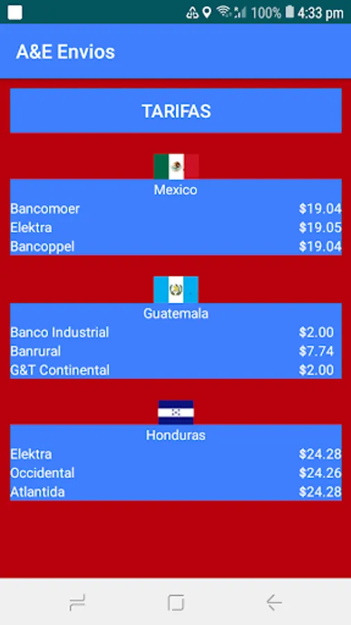 A&E Envíos is an application to view your money transfer transactions and check money transfer rates to countries such as Mexico, Guatemala, and Honduras. Store locations for A&E Check cashing and money transfer services are provided. Exchange Rates are updated daily.