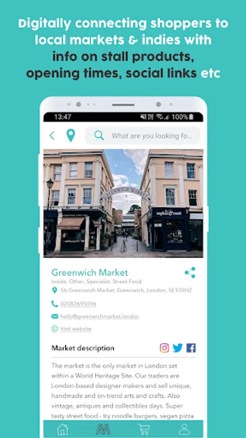 Discover markets, traders, events and offers on the first integrated retail solution for the markets industry. We want more people to get #downthemarket so our app has all the tools you need to find local products and support small, straight from your phone. We provide a FREE business toolkit to markets and traders including a digital profile, e:commerce, mobile payments & digital marketing solutions.