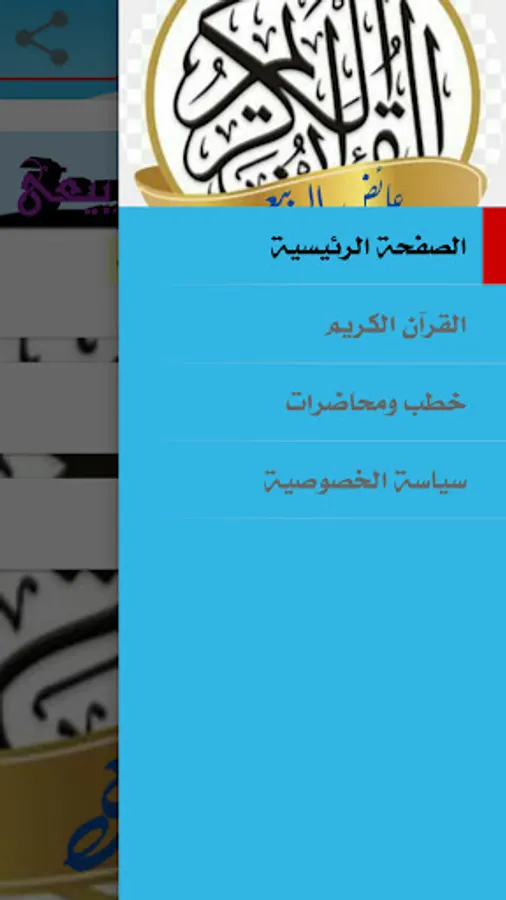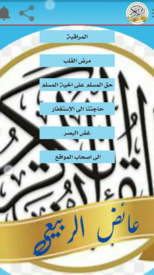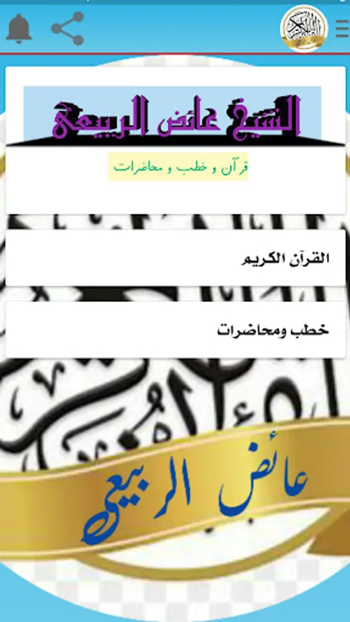 The application contains the Qur’an and sermons of Sheikh Ayed Al-Rubaie, the imam of Dar Al-Hadith, with a crossing point