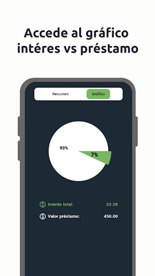 - Check the monthly fee to pay, total interest and the total payment of the loan.
