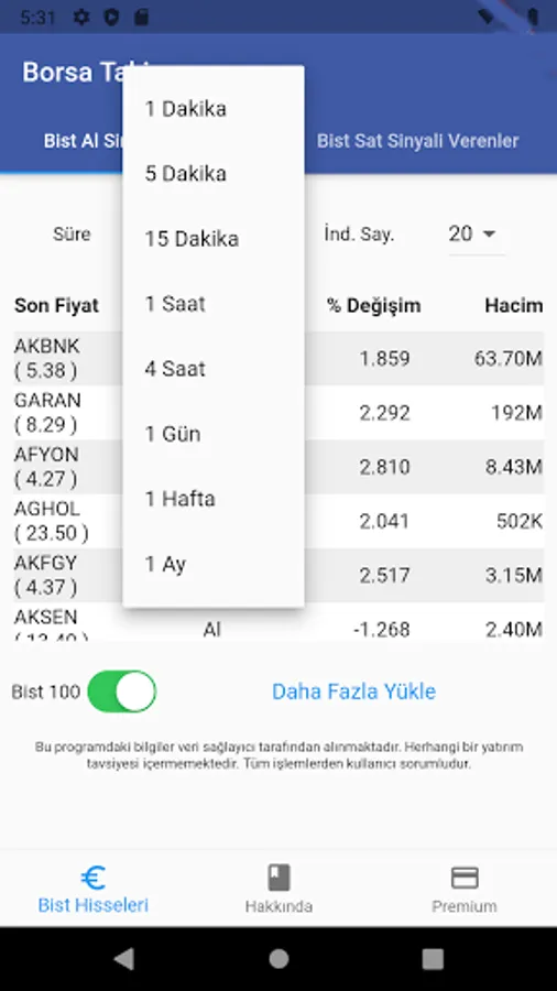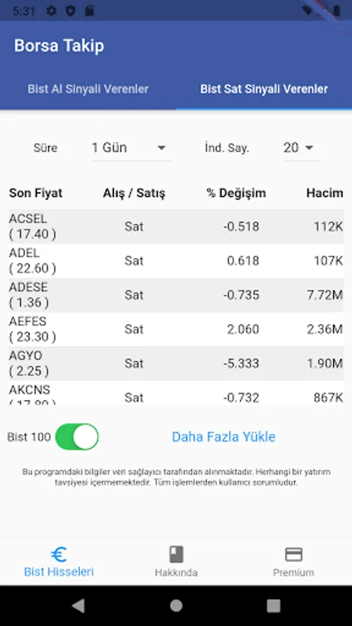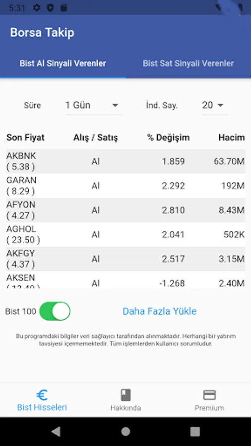 Stock Analysis Application captures the intersections of the indicators and oscillators in the buy and sell signals of the stocks in the Borsa Istanbul (Bist) Indices and lists them for you in all time frames. It has an easy use. Download now from apple and play store.