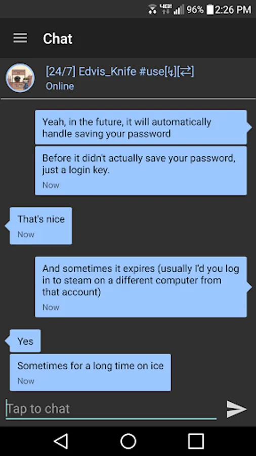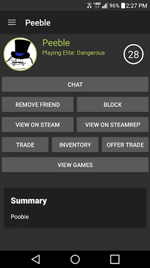 Ice is a native Android app that functions as a client for Valve™'s Steam™ network -- enabling you to chat and trade on the go!