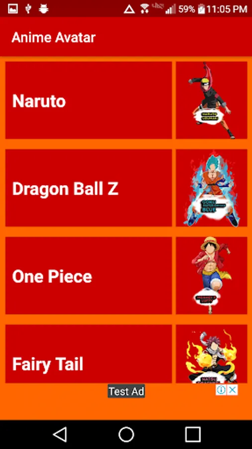 Here is how you see your personality matching a character with anime avatar, the best avatar character on Android device. This app is "Anime Avater" to select your own character such as Japanese Otaku (Culture of Japanese cartoon anime known as manga and naruto!) image.If you are interested in Otaku or Japanese animation, you will find new experience at this app.If you want to change avatar parts, you can do it!