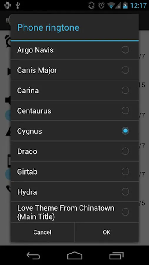 * Configure your default ringtones for Alarm, Ringer and Alert volumes.