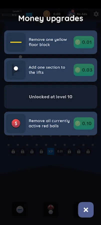 No money, one ball, and one money slot - that is how you start your plinko ball business. Choose the way you want to progress throughout the game - will you stack one money slot and focus on gaining balls or will you unlock new slots as soon as possible while sacrificing the balls? If you are a marble race enthusiast you will love the game!