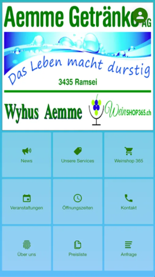 The Aemme Getränke AG is a beverage trade in the middle of the Emmental. We offer a wide and deep range of mineral, beer, wine and spirits. With this app you will receive information about events and special offers of Aemme Getränke AG. You can also order your favorite wines from home using our e-shop.