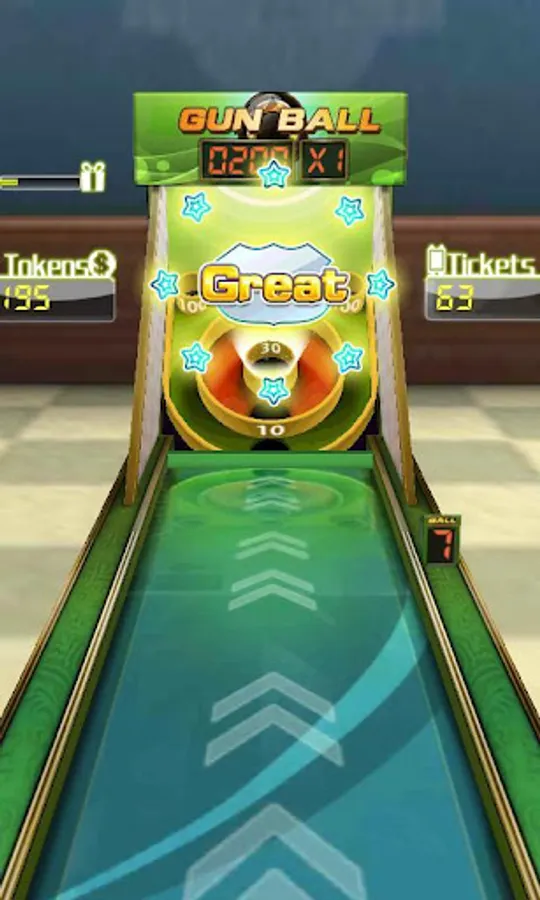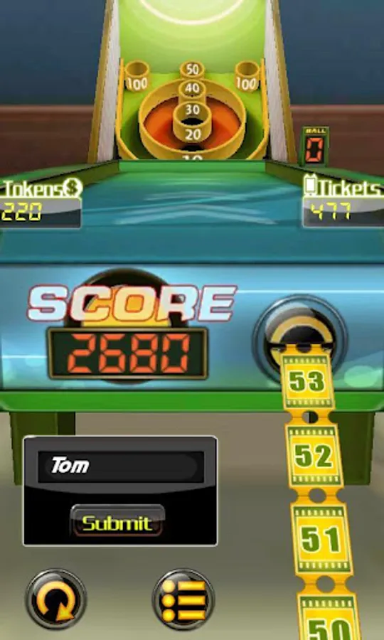 .Like real arcade skee ball machine but need not real money, you can redeem new balls, prizes with tokens you earned.