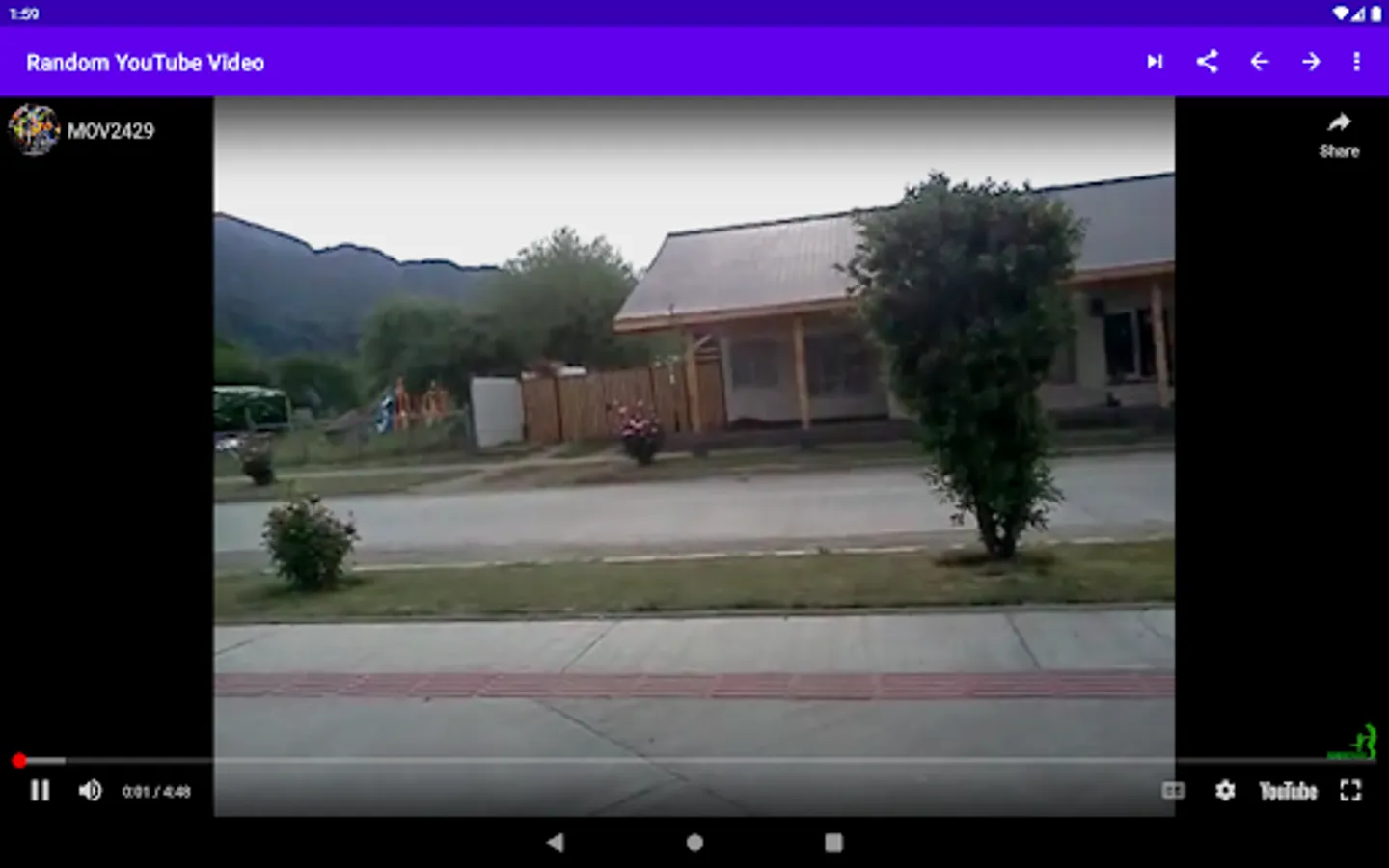 Random video opens when you open the app. Scrolling down the page opens new videos. You can watch and share these videos.