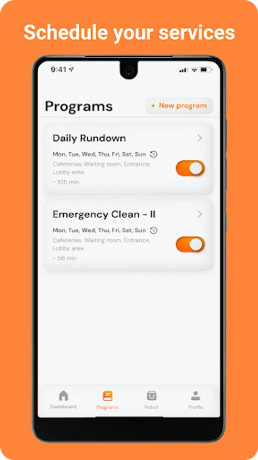 Easy program-scheduling setup complete with a calendar view, days of the week, and start time.