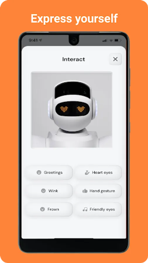 Interaction feature that enables the robot’s different expressions like greet, wink, frown and displays heart and friendly eyes, moves its hand with a gesture.