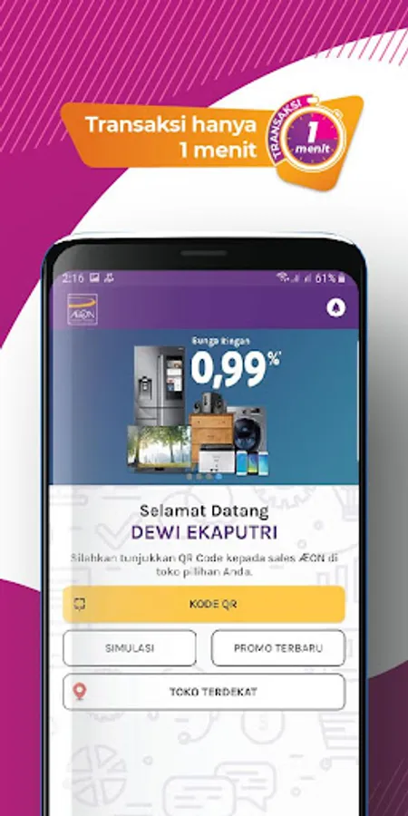 AEON Fast adalah bagian dari PT AEON Credit Service Indonesia merupakan Aplikasi yang bergerak dalam bidang Pembiayaan Konsumen, untuk memudahkan Anda dalam memenuhi kebutuhan dengan memberikan fasilitas pembiayaan multiguna yang lebih cepat, mudah dan aman.