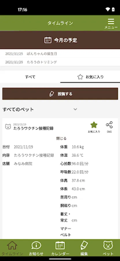 Using your friends feature, you can share the family and the time line. For such appointments and health can also be watched by the whole family, it is ideal for information sharing in family.