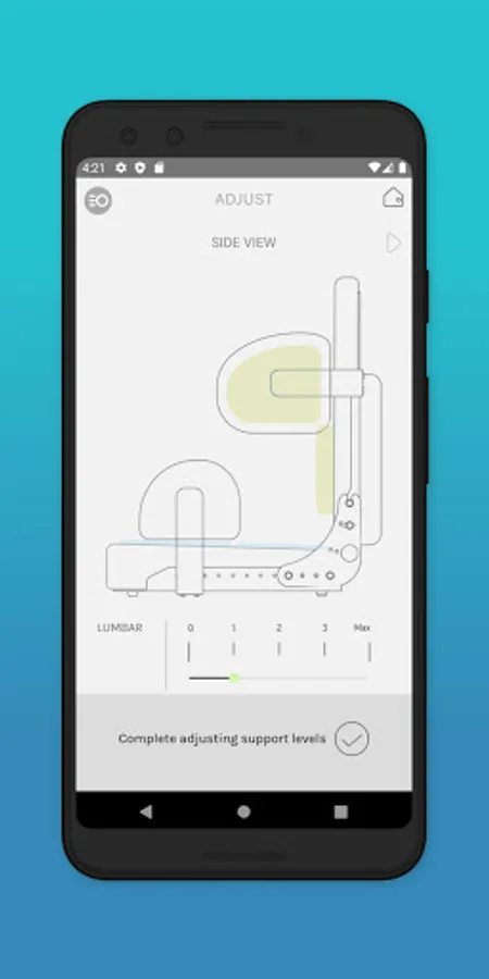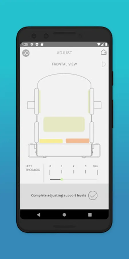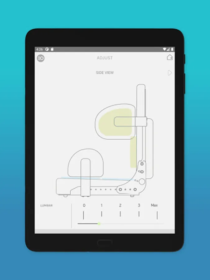 The PS app features a visual adjustment menu that displays pressure levels within each air support. Once set up the inflation level best for your postural needs, you can save the settings for fast recall the next time you use the PS device. Our key feature, Responsive mode, triggers automated postural management that adjusts air support levels in real time and keeps you in a neutral seated position. You can book appointments with Physiotherapists or Occupational therapists within the app to enable clinical assessment and adjustment to your Aergo PS support settings.