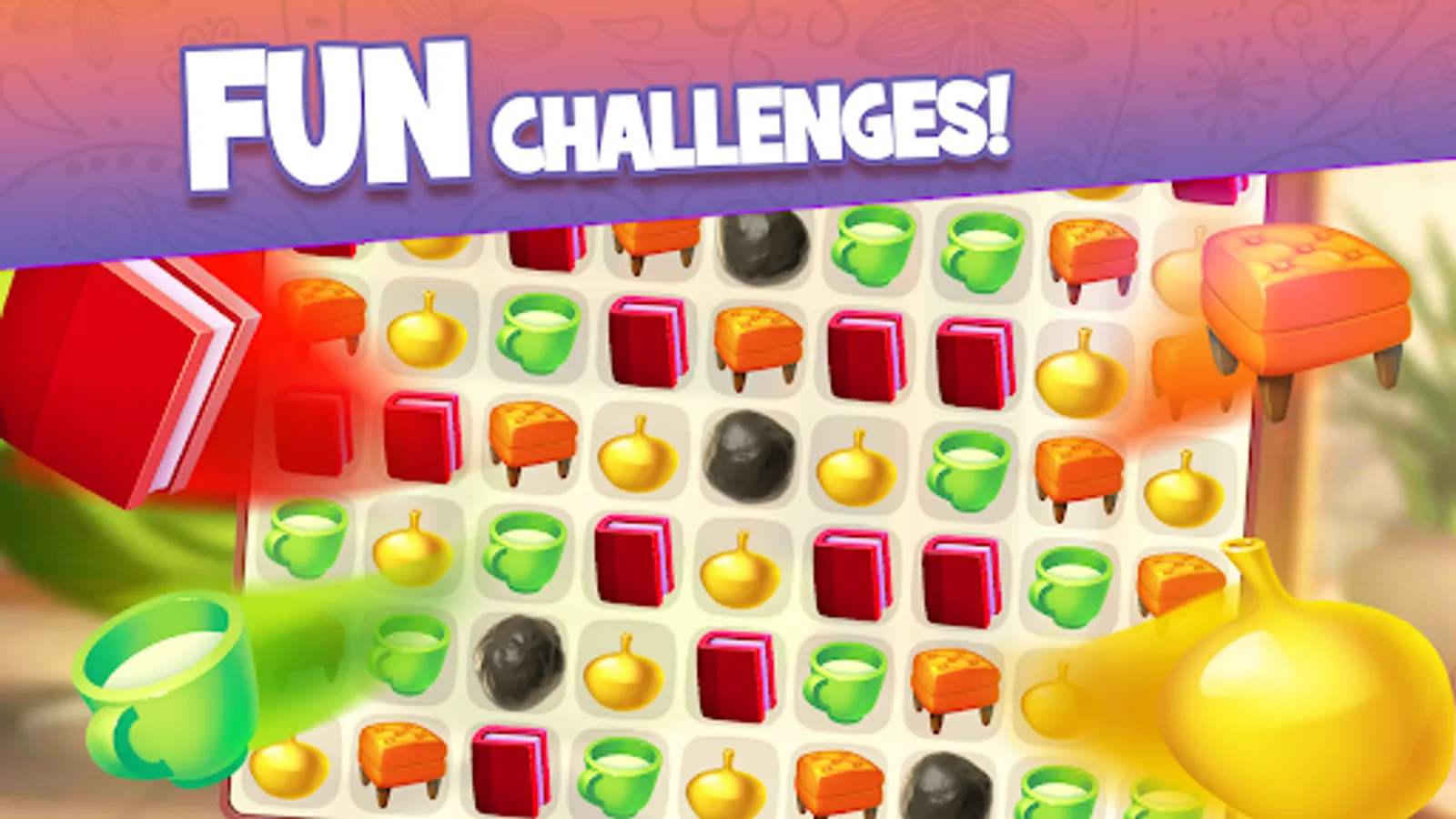 Unlock more chapters by going through the match 3 levels, and get to know Emily’s life, her friends and her designer skills. Play dog and cat games with Fido and Molly, Emily’s furry friends and design the palace of your dreams.
