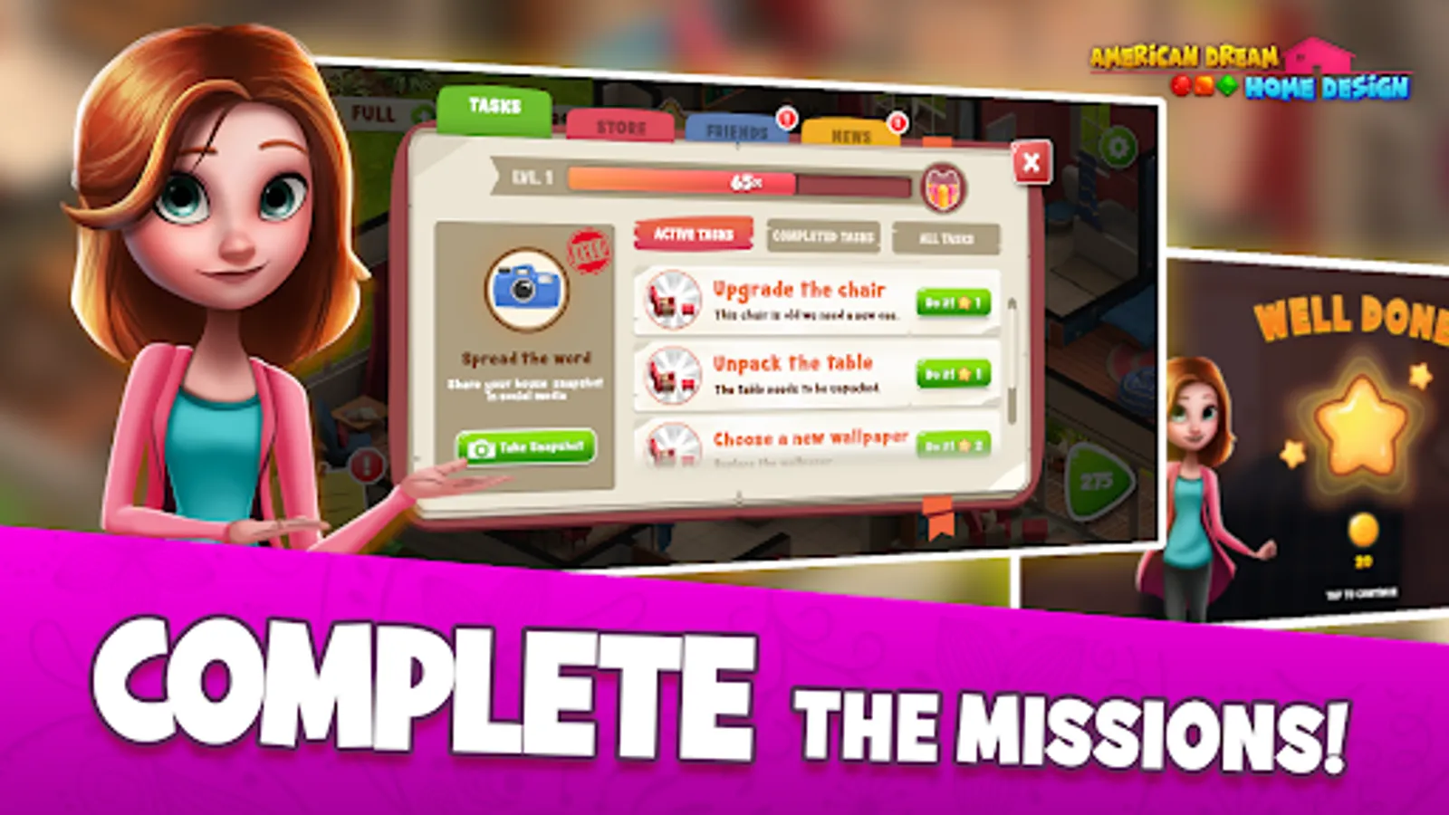 Welcome to American Dream Home Design! Meet Emily, our graduated designer from the prestige design college in California. Help Emily bring comfort and warmth in her new palace. Beat colorful match - 3 levels, destroy the shiny gems and follow the beautiful story in order to decorate and build your new house.