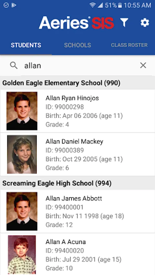 Aeries EM2 provides school-site personnel access to basic student, contact, discipline, medical, class and attendance information. Any of this data can be cached for offline use. This is useful during emergency situations where access to a computer or network is not available.