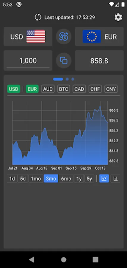Tracking forex market easily with chart (range from 1 day to 5 years), foreign rates, online currency, currency today.