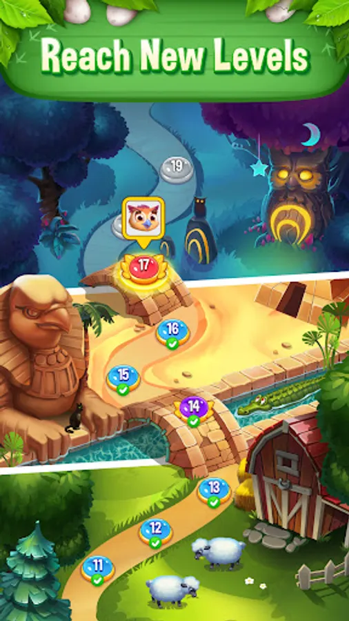 Your path will go through many locations, with its own characteristics and inhabitants: colorful jungle, mysterious forest, mysterious city, wild west, dark tombs and much more! Overcome the difficulty of the puzzle and explore all of them!