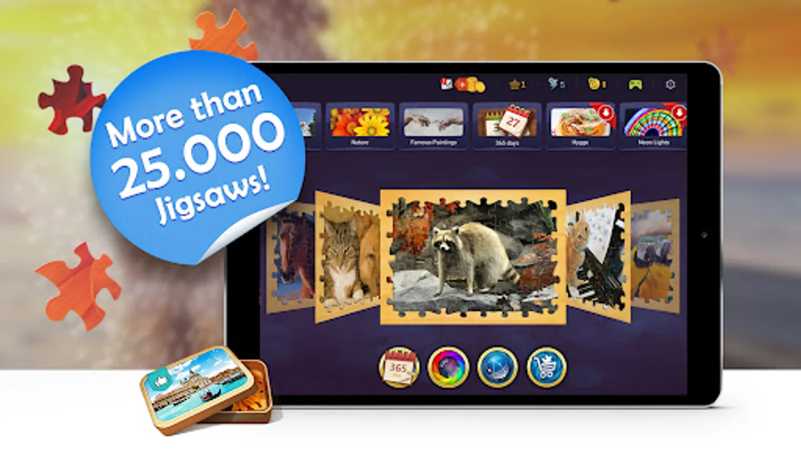 • Daily challenge: Play a Jigsaw Puzzle game every day! Beautiful new puzzle pieces are waiting for you on Jigsaw Puzzle.