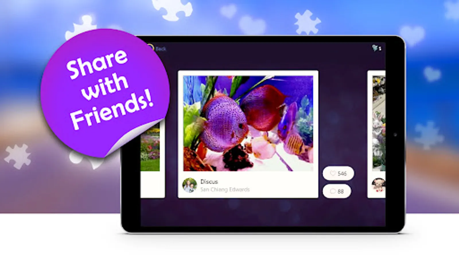 • Create custom Jigsaws from any photo or image and then share them with friends.