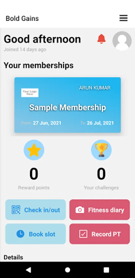 Bold Gains app automatically syncs with your gym to give you information about your fitness journey.