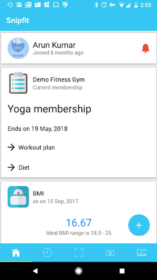 Snipfit app automatically syncs with your gym to give you information about your fitness journey.
