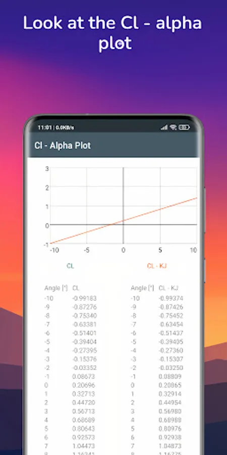 • Cl - alpha plot: look how the Cl value changes at different angles of attack. At the moment it is available only for the inviscid case.