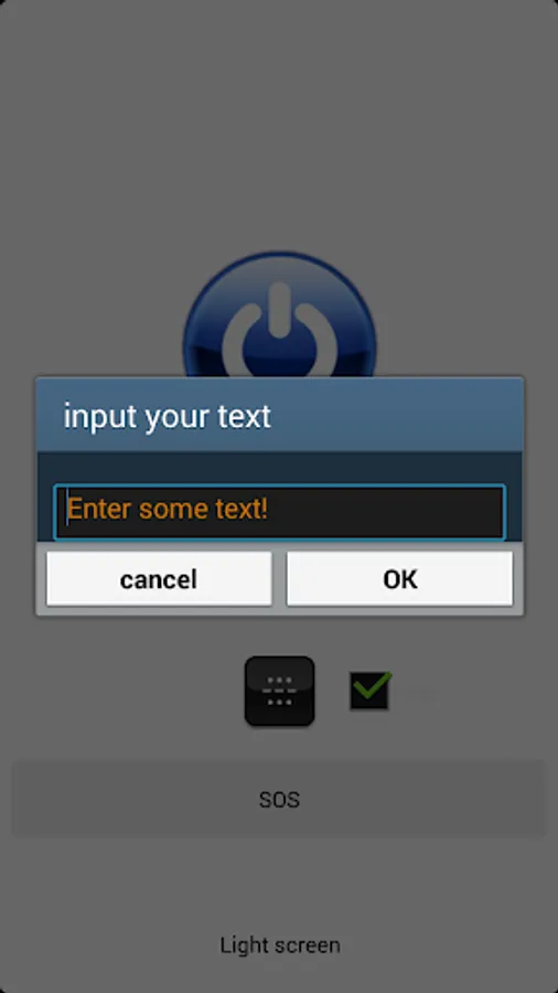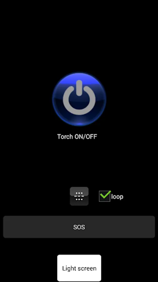 The torch allows to send morse coded messages. Enter the mesage in the text area, then press the "..." button. If the "loop" checkbox is checked, then the message will be repeated forever. The default text is "SOS", if you want a long flasher enter "T", for a fast one enter "E" ...