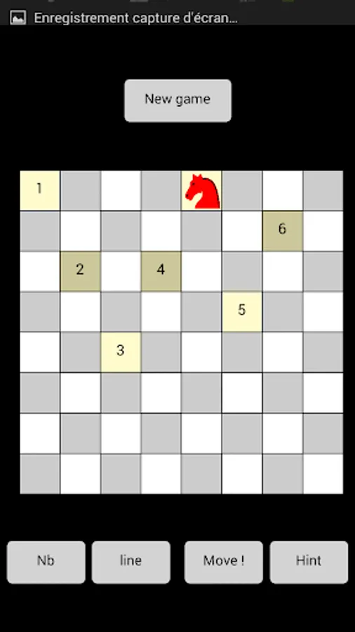 The "Nb" button allows to display or hide the sequences of jumps on the squares.