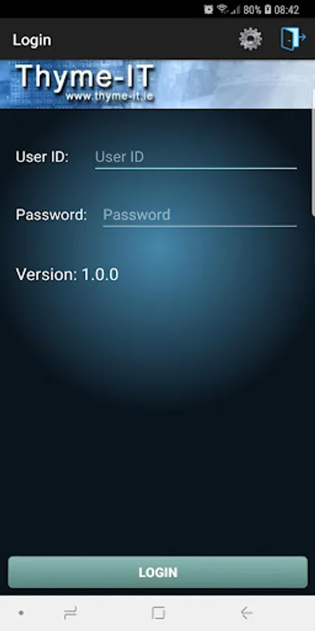 The App will be configured to connect to the Thyme-IT web-based application. Thyme-IT will provide the Server address, port and company code during initial registration.