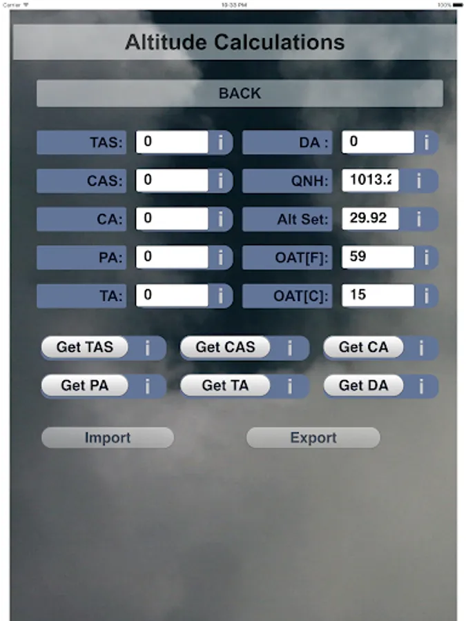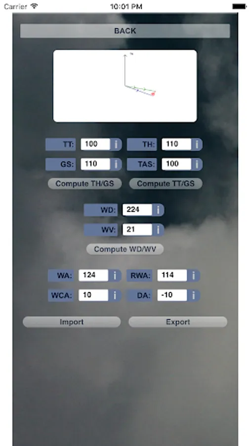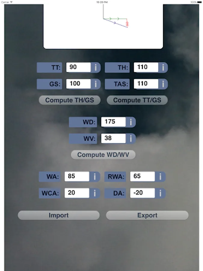 Aviation NavCalc solves all the standard problems, showing up in the navigation part of flight training for getting the private pilot license and the examination. Use the pilot app for your flight planning or for studying when you learn to fly. It consists of 11 different modules, each designed to solve a kind of problem. To facilitate the reuse of numbers in different modules, most modules have an import and/or export feature.